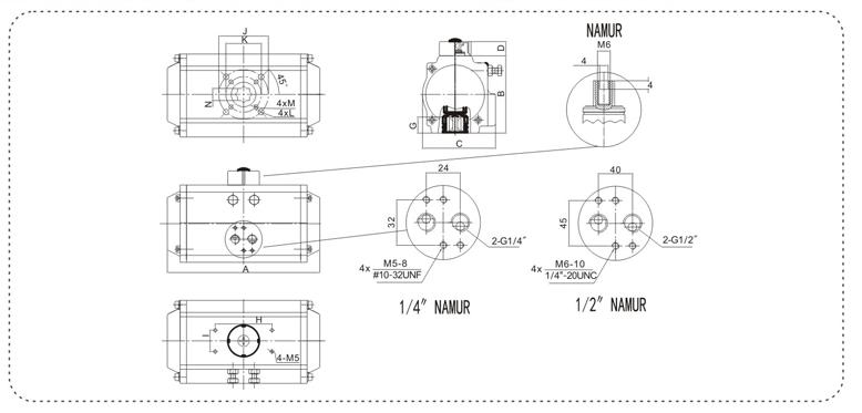 執(zhí)行器和閥門的接口符合ISO5211,DIN3337;執(zhí)行器和控制閥(電磁閥等)的接口符合 NAMUR;執(zhí)行器和信號(hào)單元(限位開關(guān),定位器)的接囗符合 NAMUR;